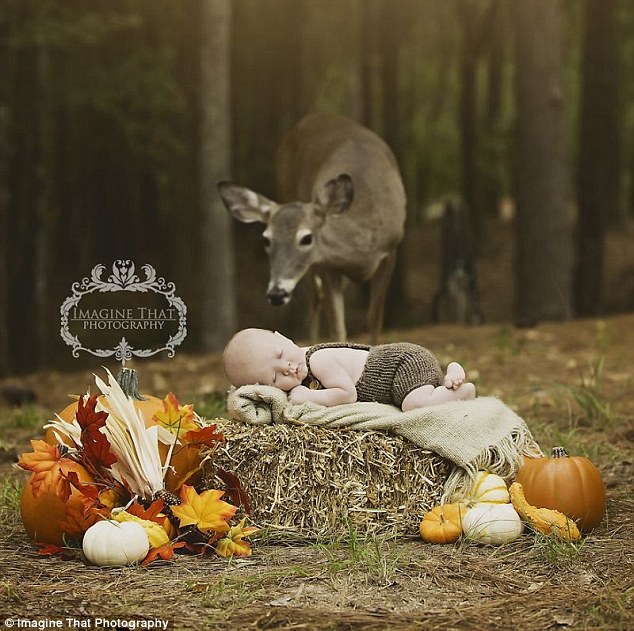 'Maggie was hand-fed as a baby, so she’s very comfortable with people,' Megan explained. 'But I always make sure that we have one hand right near the baby, because she is a wild animal.'