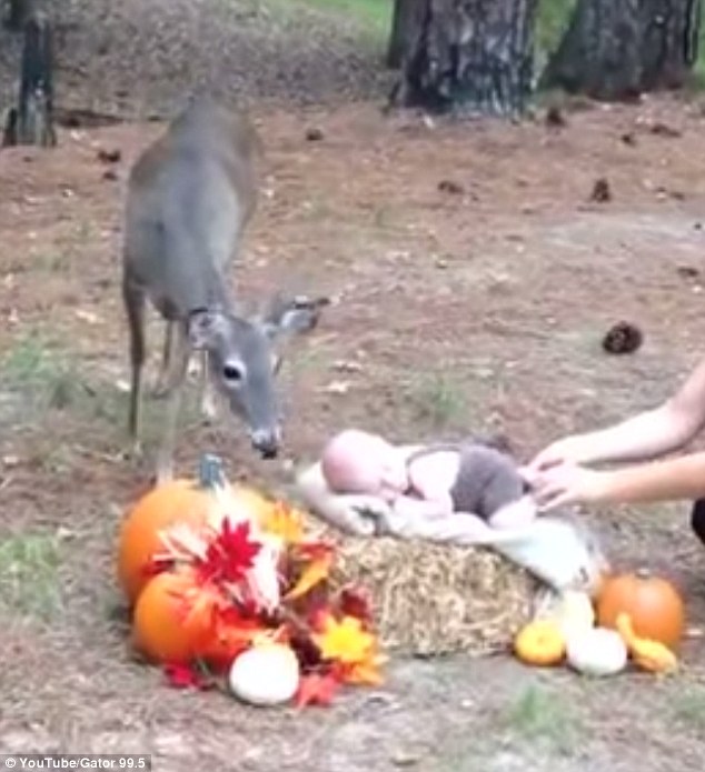 Safety first: Although Maggie is comfortable around people and often appears in Megan's photos, the photographer explained that they made sure to have someone near the baby because she is a still wild animal.
