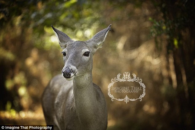In demand: Maggie, who lives in the woods, is popular among local parents who request photoshoots with her. However, Megan reminds clients that the deer isn't always guaranteed to show up.