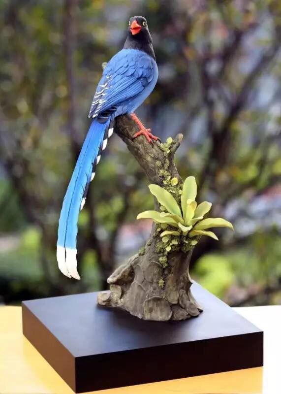 Formosan Blue Magpies are only seen in Taiwan. According to the artwork’s maker, since such species live in groups and have strong family bonds, the gift symbolizes that “people across the Strait are one family”.