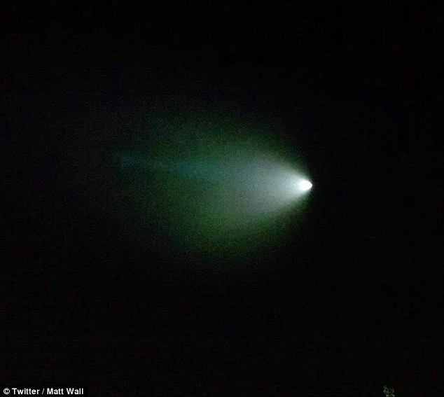 What is THAT?: A mysterious light that appeared in the night sky over Los Angeles on Saturday night had everyone from the Kardashian sisters to Josh Groban wondering if it could be a UFO. (Photo/Mail Online)