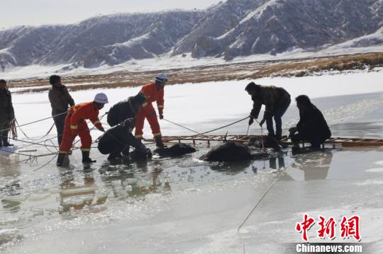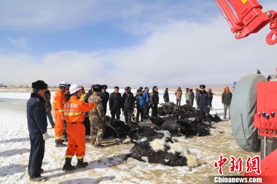 The site of the accident is 150 kilometers away from Maduo county. When officers and soldiers of the fire department of Tibetan Autonomous Prefecture of Golog came to the site, the 22 yaks in the lake had all been dead. The herdsman had no idea how to deal with the situation so he called the fire department for help.