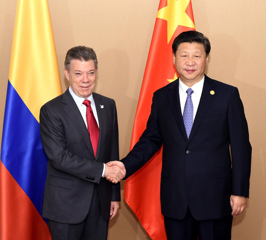 On sidelines of the APEC summit, President Xi Jinping met with Colombian President Juan Manuel Santos on Wednesday in Manila, the Philippines.