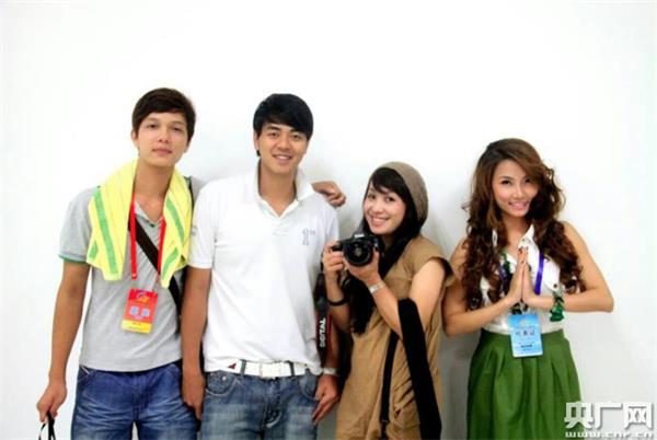 Wu Wenxun(first from the left) works as an interpreter for Vietnamese celebrities.(Photo/cnr.cn)