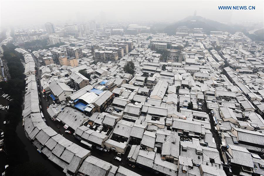 Photo taken on Dec. 6, 2015 shows snow-covered houses in Shaoxing, east China's Zhejiang Province. The city witnessed its first snow of this winter on Saturday night. [Photo: Xinhua]