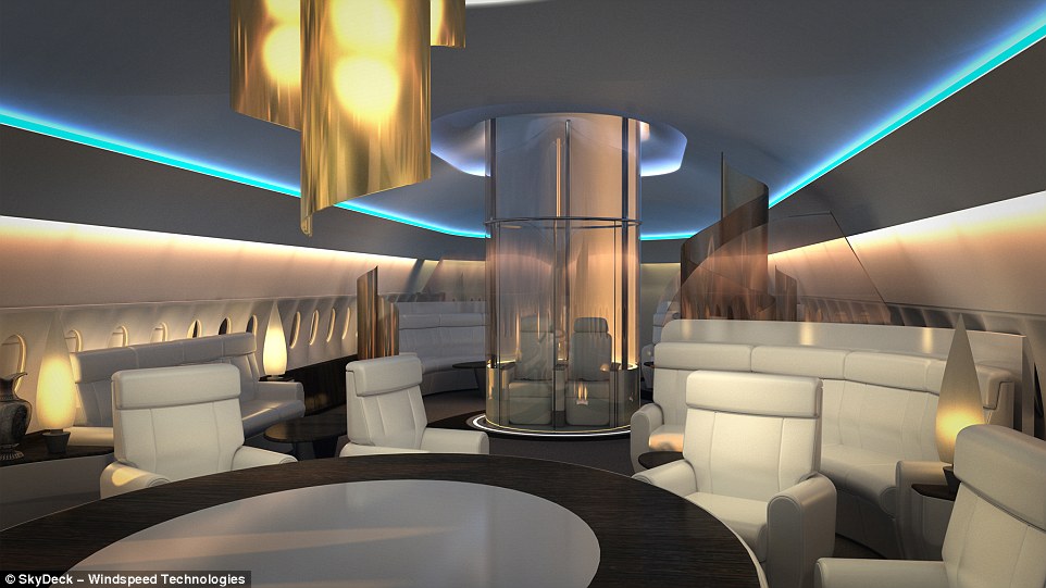 The in-flight entertainment product is hoped to be a feature that can be installed on private jets as a VIP amenity or as a pay-per-view experience on passenger airliners. One of the concepts shows a lift that can transport passengers to the viewing area