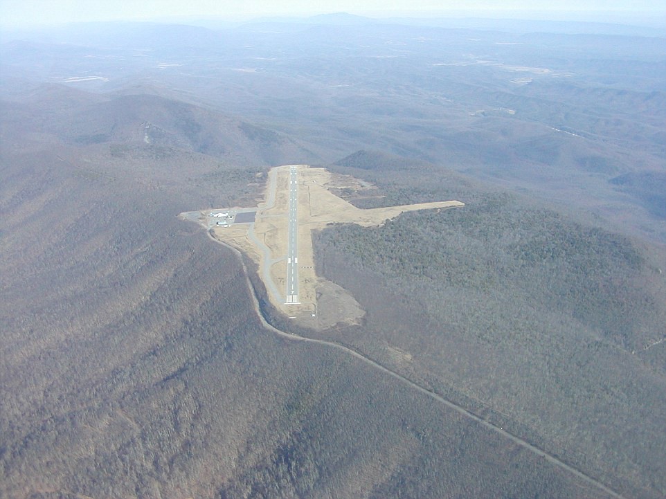 Ingalls Field Airport in Hot Springs, Virginia, is the highest airport in the area. It's perched at the top of a mountain range and is strongly effected by crosswinds