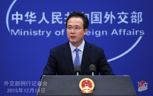 Hong Lei, Foreign Ministry spokesperson, holds a regular press conference on December 14, 2015. (Photo/Official website of China's Ministry of Foreign Affairs)