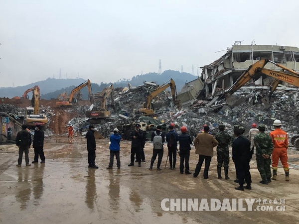 Rescuing work is under way at the landslide site in Shenzhen as strong signals of life have been detected on Monday. [Photo by Chai Hua/chinadaily.com.cn]