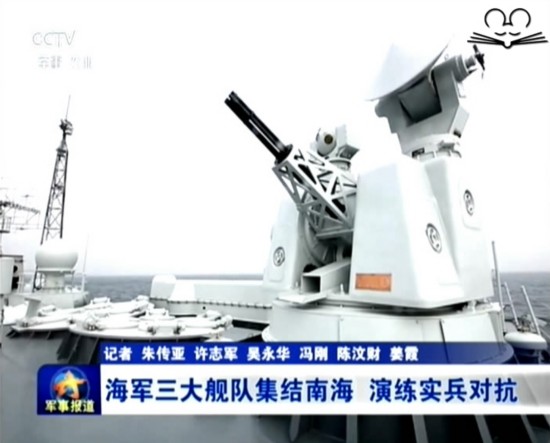 Frigates, submarines, early-warning aircrafts, fighter jets and other types of military vessels from the Navy's North Sea, East Sea and South Sea fleets travel a long distance and participate in a massive combat exercise in the South China Sea last Wednesday.(CCTV screenshot)