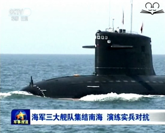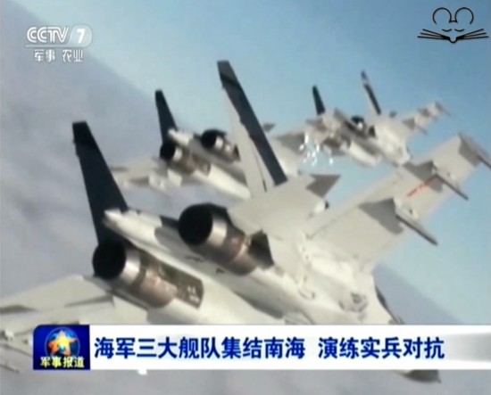 Frigates, submarines, early-warning aircrafts, fighter jets and other types of military vessels from the Navy's North Sea, East Sea and South Sea fleets travel a long distance and participate in a massive combat exercise in the South China Sea last Wednesday.(CCTV screenshot)