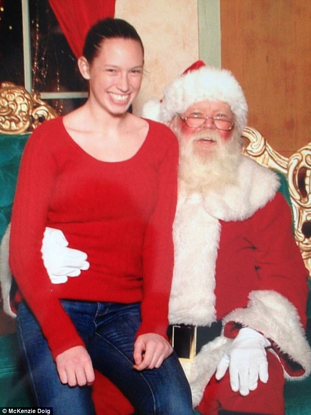 Pictured aged 14, McKenzie may have been embarrassed but still sports a festive smile