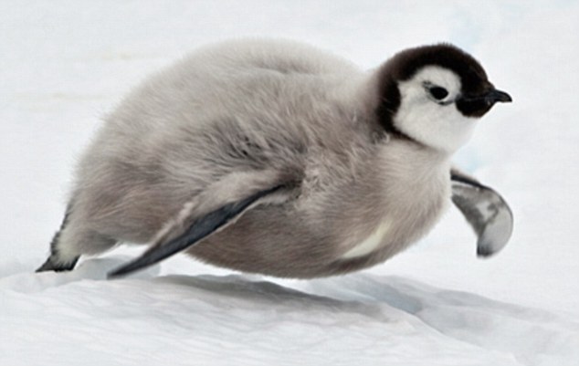 As the weather warms up, the snow melts, but then refreezes at night, creating a giant ice rink. Although penguins are streamlined in the water, on land it's a different story. They can walk at only 2mph and despite feet with tyre-like ridges and claws like crampons, Snow Chick is as unsteady on the ice as any toddler