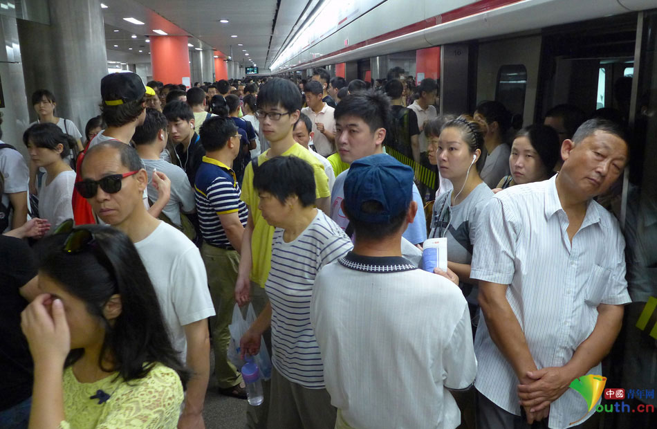 Shanghai Metro Line 1 breaks down during the morning rush hour on July 28, 2015, leaving a sea of stranded passengers. (Photo/Youth.cn)