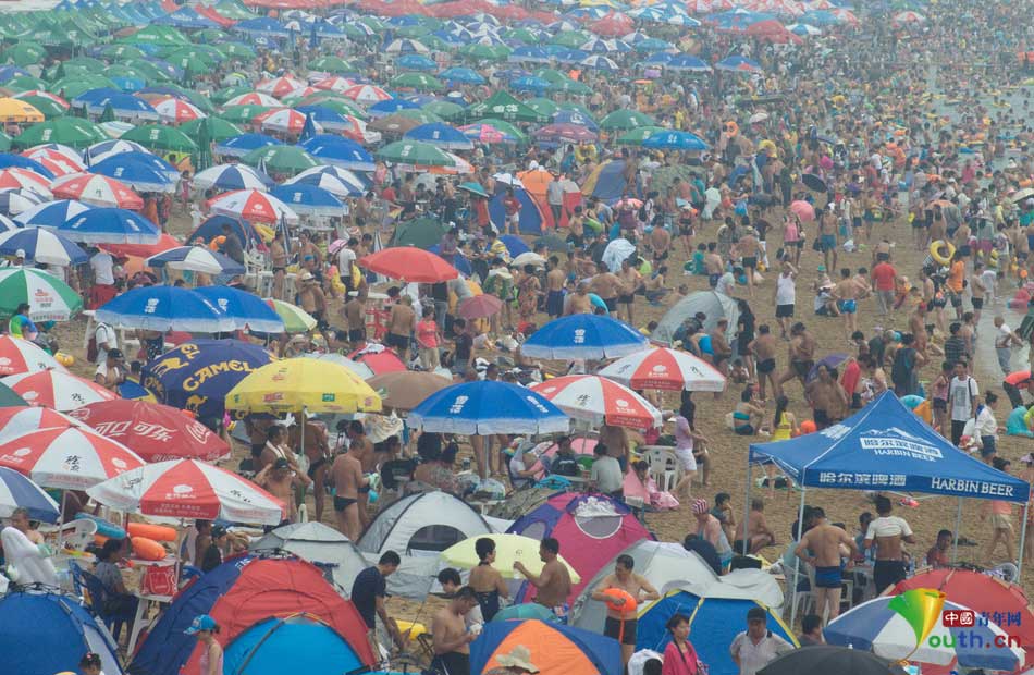 Many people go to the beach to escape the scorching heat in Dalian, northeast China's Liaoning province on Aug. 16, 2015.(Photo/Youth.cn)