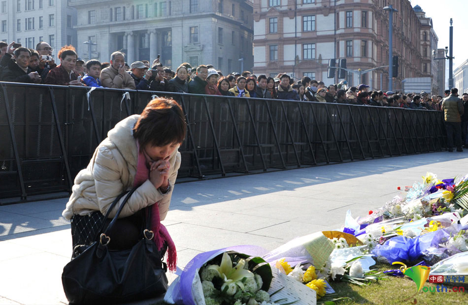 A great number of Shanghai citizens and tourists from other places gather in the Chenyi Square, mourning for the victim of the 2014 Shanghai stampede on Jan. 2, 2015.(Photo/Youth.cn)