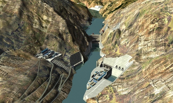 A concept map of the Wudongde project, located on the upper reaches of the Yangtze River. [Photo: Xinhua]