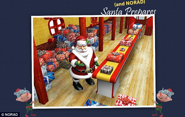 NORAD has been following Santa's movements from space since 1955, when an advert encouraging children to phone Santa gave out its number instead. This screenshot from NORAD shows Santa preparing for his trip