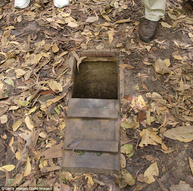 Cu Chi tunnels are located about 20 miles outside of Ho Chi Minh City and during the Vietnam War, Viet Cong guerillas hid from the Americans inside the 200-mile long network.