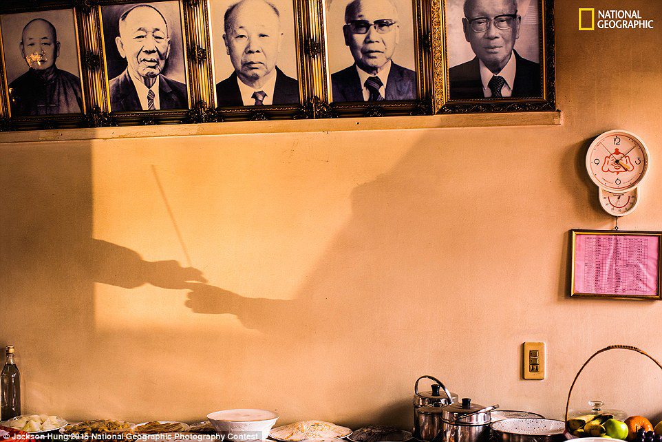Jackson Hung, Taiwan. This photo was taken during Chinese New Year's Eve of 2015. While paying respects to our ancestors, I noticed how the light was coming into the room and saw the passing of incense sticks to each of our family members after sending our prayers. The photo is symbolic since the passing of incense sticks resembles and knowledge and wisdom passed down from generation to generation