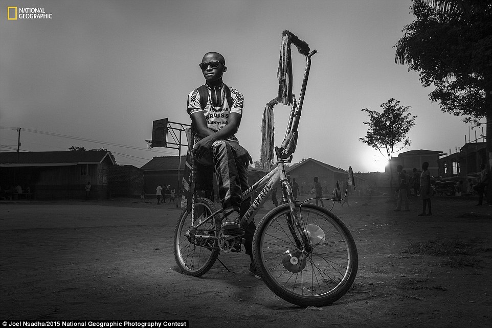 In this photograph, called 'At the Playground,' a young man in a Ugandan slum sits on his most cherished possession, his bicycle.