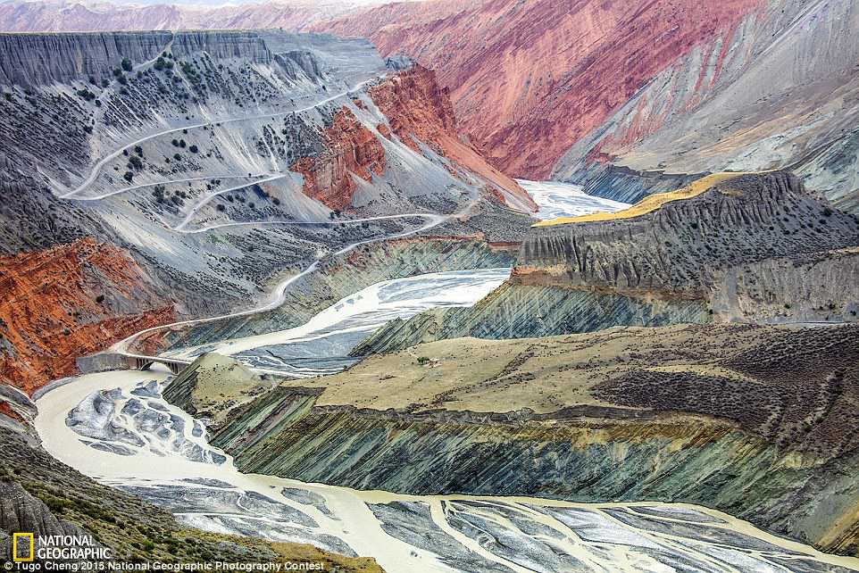 Tugo Cheng. As the largest mountain ranges in Central Asia, Tian-shan ('sky-mountain' in Chinese), has one of the best collections of natural landscapes in the world and is seen by many as a paradise for outdoor adventures. Thanks to the richness of sediments compounded with the power of erosion by rivers flowing down the mountains, the north face of Tian-shan is carved into stunning plateaus and colorful canyons hundreds of meters deep, resulting in this surrealist painting in nature