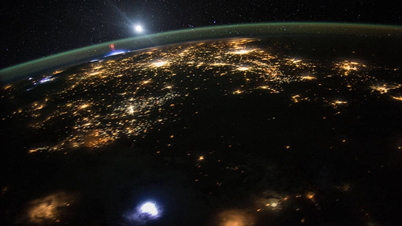 A red sprite above the white light of an active thunderstorm. (Photo/NASA)