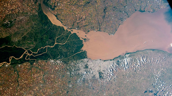 The eye-catching delta and green swamps of the Paraná River (image left) on the Atlantic coast of Argentina. (Photo/NASA)