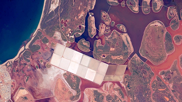 Coastal lagoons with numerous rounded islands are typical of the Indian Ocean coastline of Western Australia. (Photo/NASA)