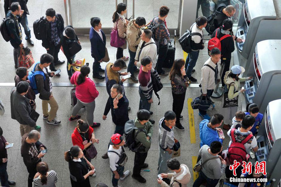 Passengers wait to buy tickets at a railway station in Hainan's capital, Haikou on January 1, 2016.[Photo: Chinanews.com]