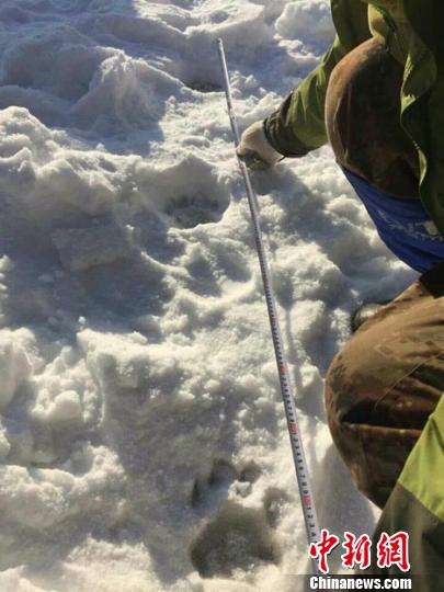 Staff members measure the footprints left on snow. (Photo provided by local forestry authority)