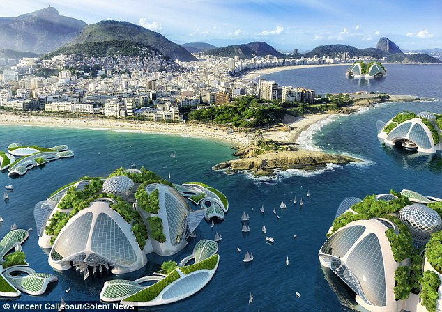 Vincent Callebaut from Belgium says has he designed the self-sufficient oceanscrapers as a viable place for humans to live to reduce the carbon footprint on the planet.