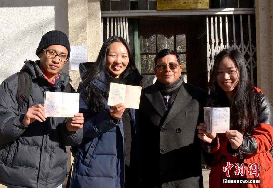 Photo shows the first batch of Chinese mainland tourists holding Nepal travel visa at the Consulate General of Federal Democratic Republic of Nepal in Lhasa, city in southwest China's Tibet Autonomous Region. Nepal has recently announced to waive visa application fees for Chinese tourists.