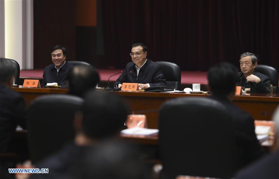 Chinese Premier Li Keqiang (C, rear) presides over a symposium on China's coal industry to address its excessive capacity in Taiyuan, capital of north China's Shanxi Province, Jan. 4, 2016.(Xinhua/Xie Huanchi)