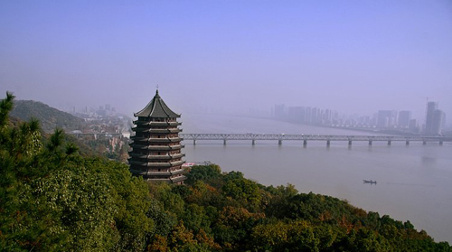 Liuhe Pagoda, literally Six Harmonies Pagoda, is a multi-story pagoda in southern Hangzhou, east China's Zhejiang province. It is located at the foot of Yuelun Hill, facing the Qiantang River. It was originally constructed in 970 AD during the Northern Song dynasty (960–1127), destroyed in 1121, and reconstructed fully by 1165, during the Southern Song dynasty (1127–1279).