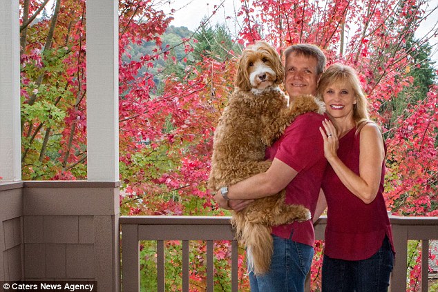 Mrs Swiridoff explained: 'Reagan is great with kids and other dogs, he hasn't met another dog or person that he doesn't like.