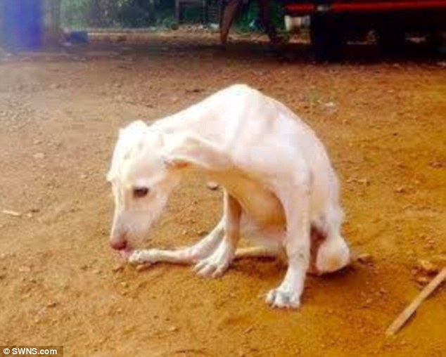 Heartbreaking: Indy the dog, pictured as a small puppy in Goa, had lost the use of her back legs after being attacked by another dog, and lived in a rescue centre when the Angela and Ian Szczypka found her