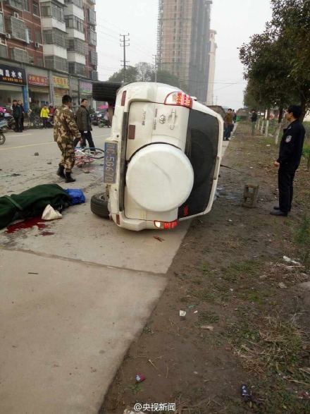 A car driven by a man surnamed Hu hit pedestrians in Fengxin county, eastern China's Jiangxi province, on Tuesday morning, killing three and wounding 15. Most of the victims are students. Hu has been controlled by the local police, according to CCTV News on Jan. 19. The cause of the accident is being investigated.