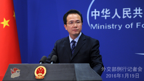 Hong Lei, spokesperson of China's Ministry of Foreign Affairs, is on a regular press conference on Jan.19, 2016. (Photo from official website of China's Ministry of Foreign Affairs)