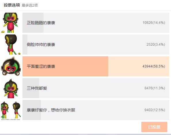 In a vote by Sina Weibo,China's Twitter-like website, 58.5 percent of people "liked" the ink painting version of the monkey, only 14.4 percent like the front view of the 3D version, while 12.5 percent want to "change its clothes", supposedly meaning they don't like the colors. Photo from Weibo.