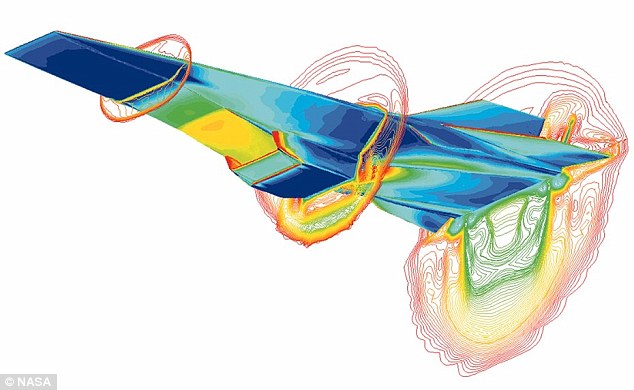 The dream of flying from New York to London in just one hour has come a step closer to reality. Orbital ATK has tested a 3D printed hypersonic engine combustor at Nasa Langley Research Centre in Virginia. Pictured is an image of a concept hypersonic plane shown in design software that models its aerodynamics.