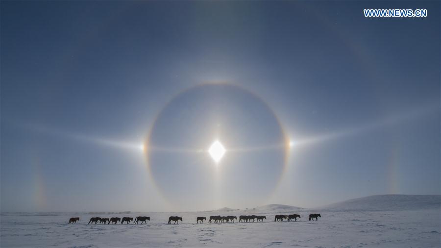 CHIFENG, Jan. 24, 2016 -- Photo taken on Jan. 24, 2016 shows a view of solar halo over Hexigten Banner in north China's Inner Mongolia Autonomous Region. (Xinhua/Sun Guoshu)