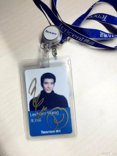 Leehom Wang's working pass in Tencent (Photo from Weibo account of QQ music)