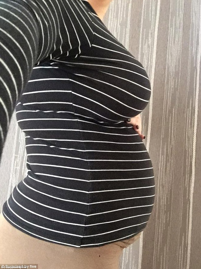 An early photo posted to Mrs Tucci's blog when she was just 11 weeks along but her size can be compared to a mother who is almost at the end of her pregnancy.