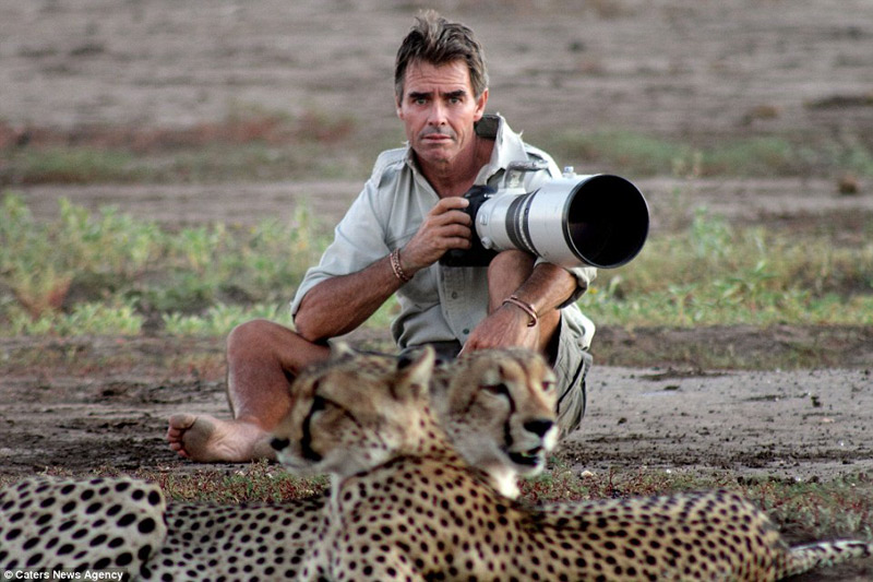 He had been taking photos of a mother cheetah with her four cubs when the female cub decided to give his foot the once over.
