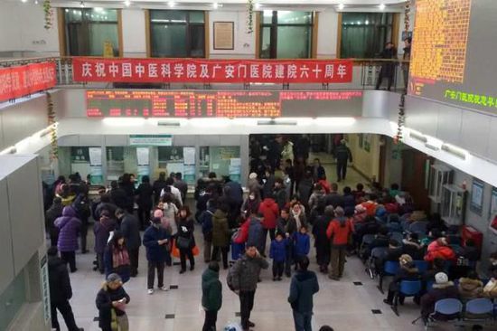 A photo shows the lines of patients waiting to book an appointment at Guang'anmen Hospital in Beijing on Januarary 27, 2016. [Photo: news.haiwainet.cn]