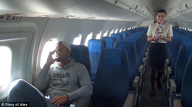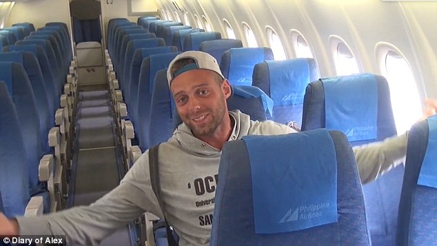 Alex Simon, 28, had the entire Philippine Airlines plane to himself as he travelled from Manila to Boracay.