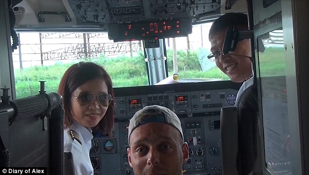 Simon shot footage on board the domestic flight and even had a chance to enter the cockpit and chat with the pilots before the plane took off.