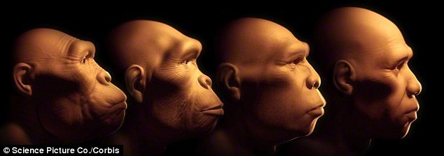 As humans embrace technological advances and gradually become androids, we could gradually see Homo sapiens being replaced by Homo optimus. This conceptual image shows four stages of human evolution (left to right) showing Australopithecus, Homo habilis, Homo erectus and Homo sapiens