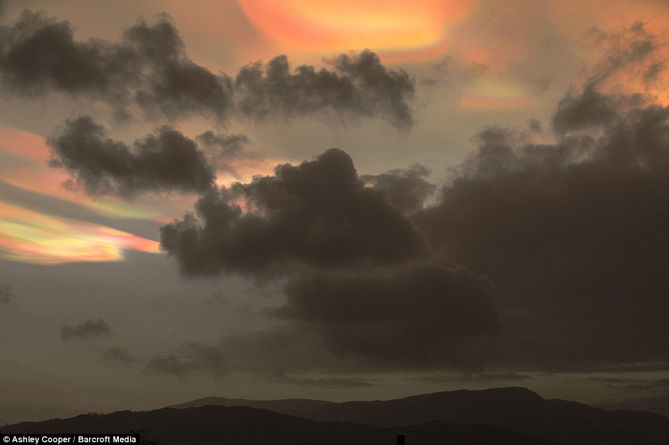 Powerful: The sky above the rolling landscape of the Lake District is painted with the reds, pinks, and oranges of the 'fire rainbow'